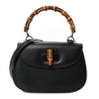 Shangai Calfskin Small Classic Bamboo Top Handle Bag Black