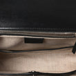 This is an authentic GUCCI Shangai Calfskin Small Classic Bamboo Top Handle Bag in Black. This chic tote is crafted of textured black calfskin leather. The bag has a sturdy looping bamboo top handle, an optional shoulder strap with aged silver hardware, and a bamboo turn-lock on the crossover flap. This opens the bag to a natural canvas fabric interior with zipper and patch pockets.