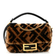 Shearling Vitello Dolce Macro FF 1974 Mini Baguette Tobacco Black
