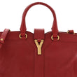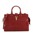 This is an authentic SAINT LAURENT Sheepskin Small Cabas ChYc in Red. This lovely tote is crafted of luxurious leather in red. The bag features rolled leather top handles, an optional leather shoulder strap, and a cross over strap with a weighted brass Y logo and a brass top zipper. This opens to a spacious black fabric interior with zipper and patch pockets.