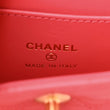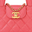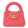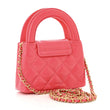 This is an authentic CHANEL Shiny Aged Calfskin Quilted Mini Nano Kelly Shopper in Dark Pink. This mini bag is a twist on an archival Chanel bag, featuring a long crossbody chain strap. This dual top handle bag is quilted calfskin leather in pink accented by aged gold hardware, including a Chanel CC turn-lock at the flap. This opens to a compact pink leather interior.