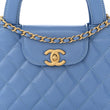 Shiny Aged Calfskin Quilted Nano Kelly Shopper Blue