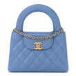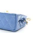 This is an authentic CHANEL Shiny Aged Calfskin Quilted Nano Kelly Shopper in Blue. This mini bag is a twist on an archival Chanel bag, featuring a long crossbody chain strap. This dual top handle bag is quilted in shiny aged calfskin leather in blue, accented by aged gold hardware, including a Chanel CC turn-lock at the flap. This opens to a compact matching leather interior with zipper and flat pockets.