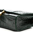 Shiny Calfskin Crocodile Embossed Hourglass Chain Bag Forest Green