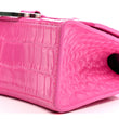 Shiny Calfskin Crocodile Embossed Hourglass Top Handle Bag XS Neon Pink