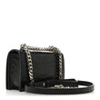 Shiny Calfskin Crocodile Embossed Mini Jeweled Satchel Black