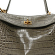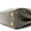 Shiny Calfskin Crocodile Embossed Small Rodeo Top Handle Handbag Army Green