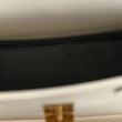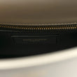 This is an authentic SAINT LAURENT Shiny Calfskin Le Fermoir Top Handle Bag Small in Crema Soft. This elegant shoulder bag is crafted from smooth ivory calfskin leather. The bag features a top handle, an optional adjustable shoulder strap, and brass hardware. The front features a cross strap with a brass buckle that opens to a black leather interior with a zipper pocket.