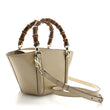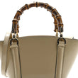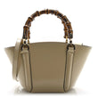 Shiny Calfskin Mini Bamboo Top Handle Tote Bag Beige