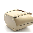 This is an authentic GUCCI Shiny Calfskin Mini Bamboo Top Handle Tote Bag Beige. This bag is crafted of beige shiny calfskin leather and gold hardware. The top opens to a beige leather interior.