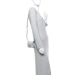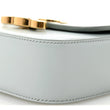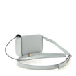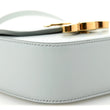 This is an authentic CELINE Shiny Calfskin Mini Claude in Soft Blue. This chic shoulder bag is crafted of calfskin leather in light blue. The bag features an adjustable leather shoulder strap with gold triomphe hardware and a matching gold press lock on the crossover flap. The flap opens to a leather interior with a patch pocket.