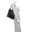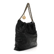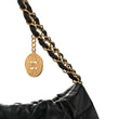 This is an authentic CHANEL Shiny Calfskin Quilted Chanel 22 in Black. This chic bag is crafted of shiny diamond-stitched calfskin leather in black. The bag features a leather-threaded gold chain shoulder strap with a Chanel CC medallion, and a matching Chanel logo on the front of the bag. The top is open to a black diamond-stitched fabric interior with a zipper pocket and matching removable pouch.