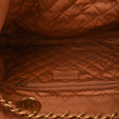 This is an authentic CHANEL Shiny Calfskin Quilted Chanel 22 in Camel. This stylish handbag is crafted of diamond-stitched calfskin leather in brown. The bag features leather threaded gold chain shoulder straps and a matching Chanel logo on the front. The open top with magnetic closure leads to a brown fabric interior with a zipper pocket and matching removable pouch.