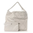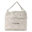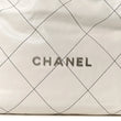 This is an authentic CHANEL Shiny Calfskin Quilted Chanel 22 in White and Black. This chic bag is crafted of textured smooth calfskin diamond-stitched leather in white. The bag features an aged silver chain threaded leather shoulder strap. The bag is open to a matching white and beige diamond stitched fabric interior with a zipper pocket.