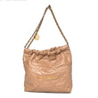 This is an authentic CHANEL Shiny Calfskin Quilted Small Chanel 22 in Beige. This stylish handbag is crafted of diamond-stitched calfskin leather in beige. The bag features leather threaded gold chain shoulder straps and a matching Chanel logo on the front. The open top with magnetic closure leads to a beige fabric interior with a zipper pocket and matching removable pouch.