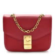 This is an authentic CELINE Shiny Calfskin Small C Bag in Red. This super-chic shoulder bag is crafted of fine smooth leather in red. This modern handbag features a polished gold chain link shoulder strap, a front gold lock that opens to a partitioned leather interior with a zipper pocket.