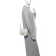 This is an authentic CELINE Shiny Calfskin Teen Triomphe in Arctic White. This super chic shoulder bag is crafted of fine smooth calfskin leather in white. The bag features a leather shoulder strap and a front gold press lock that opens the front flap to a partitioned matte leather interior with a zipper pocket.