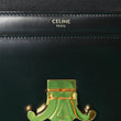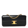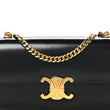This is an authentic CELINE Shiny Calfskin Triomphe Chain Bag in Black. This chic shoulder bag is crafted of smooth calfskin leather in black. The bag features a gold chain shoulder strap, and a matching gold press lock on the crossover flap that opens to a partitioned black leather interior with a zipper pocket.
