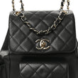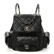 Shiny Caviar Quilted Small Pockets Drawstring Backpack Black