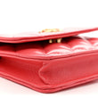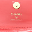 This is an authentic CHANEL Shiny Lambskin Quilted Card Holder On Chain in Pink. This stylish bag is crafted of luxuriously soft diamond quilted lambskin leather in pink. The bag features a gold shoulder strap and a facing flap with a gold Chanel CC logo. The flap opens to a pink fabric interior.