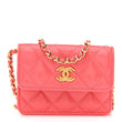 Shiny Lambskin Quilted Card Holder on Chain Pink
