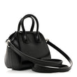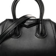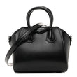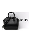 This is an authentic GIVENCHY Shiny Lord Calfskin Micro Antigona in Black. This elegantly structured tote is crafted of luxuriously polished smooth calfskin leather in black. This shoulder bag features sturdy rolled leather top handles with polished silver hardware, shoulder strap and signature extended sides. The top open to a black leather interior.