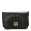 This is an authentic LOEWE Shiny Nappa Lambskin Mini Goya Puffer Bag in Black. This stunning bag is crafted of smooth Lambskin leather in black. The bag features polished gold hardware. The top opens to a matching leather interior with zipper and patch pockets.