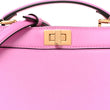 This is an authentic FENDI Shiny Nappa Petite Peekaboo I SEE U Satchel in Rosa. This chic tote is finely crafted of smooth padded calfskin leather in pink. This mini-sized bag features a leather top handle, adjustable, optional leather shoulder strap with gold hardware including squared turn locks on either side. This opens to reveal a leather interior with a patch pocket.