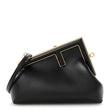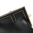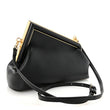 This is an authentic FENDI Shiny Nappa Small Fendi First in Black. This chic bag is crafted of nappa leather in black. The bag features a matching optional shoulder strap with polished gold-tone hardware. The top opens with a prominent hinged, gold-tone Fendi logo detail to a spacious interior. The bag is lined with the signature Fendi FF fabric jacquard motif.