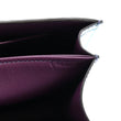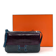 This is an authentic HERMES Shiny Niloticus Crocodile Constance Elan 25 in Cassis, Bleu Izmir, Bleu Tempete. This stylish shoulder bag is finely crafted of luxurious crocodile in dark purple and blue. The bag features a cross-body shoulder strap with silver palladium hardware and the bag has rounded corners with a large frontal palladium Hermes H silver croc clasp for the frontal flap that opens to a smooth purple leather interior.