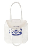THIS BAG IS MADE OF COTTON CANVAS WITH LEATHER DETAILS. IT FEATURES A CONTRASTING LOGO PRINT ON THE FRONT. THE HANDLES ARE LONG AND MADE OF FABRIC. INSIDE, WE FIND A FLAT POCKET.