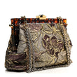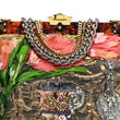 Silk Crystal Beaded Sequin Plexiglass Floral Vanda Circles Chain Clutch Multicolor