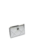 Elevate your everyday essentials with this stunning silver cow leather card holder from Tory Burch. Crafted from luxurious metallic leather with an eye-catching quilted geometric pattern, this compact accessory combines sophistication with functionality.