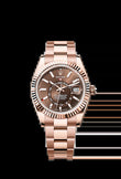 Unworn watch Rolex Sky-Dweller, 42mm, 18k Everose Gold, Ref# 336935-0002. New for 2023, a true masterpiece of engineering. Elegant and versatile, this stunning timepiece is the perfect luxury accessory for the modern traveler. This superb chronometer features an Chocolate dial, which is the perfect backdrop for the luminous 18k Everose Gold index hour markers and hands, making it easy to read the time even in low light conditions. A well-readable minute scale is applied along the outer contour of the dial. The sophisticated multi-function display makes it easy to keep track of the time in two different time zones. The reference time is displayed in 24-hour format on an off-center dial, while the local time is read using the normal central hands. The annual calendar, named Saros, is powered by a patented mechanism and features an innovative display: the months of the year are shown in 12 windows around the circumference of the dial, behind the hour marker - the current month is displayed in red. The instantaneous date change is related to local time. The ribbed, easy-to-grip Triplock 18k Everose Gold screw-down crown features a triple water-resistance system in and Rolex logo decorated. The dial is covered with a scratch-resistant sapphire crystal with anti-reflective coating and Cyclops lens at the 3 o'clock position. The fluted bezel in 18k Everose Gold is a true hallmark of Rolex. Bidirectional rotatable, it is part of the Ring Command system and, when interacting with the crown, allows the user to select watch functions one by one and adjust them easily, quickly and simply. The model is powered by the innovative in-house Rolex mechanical movement, caliber 9002, contains 29 jewels and has an approximate power reserve of approximately 72 hours. This delightful timepiece is presented on an Oyster bracelet with one-piece three-piece links in 18k Everose Gold. Thanks to the new hidden fastening system under the bezel, there is a perfect visual continuity between the bracelet and the case. The bracelet features an 18k Everose Gold Oysterclasp folding clasp with Rolex's original Easylink patented quick extension system of approximately 5mm for added comfort in all circumstances. Water resistant up to 100m/330ft (10 ATM).