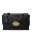 This is an authentic MULBERRY Small Classic Grain Calfskin Medium Lily in Black. This super chic shoulder bag is crafted of grained calfskin leather in black. The bag features a leather-threaded polished gold chain link shoulder strap, and a matching gold turn lock on the crossover flap. This opens the bag to a black suede interior with zipper and patch pockets.