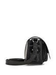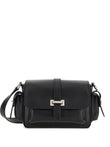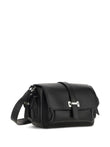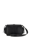 SMALL FLAP BAG in LEATHER, BLACK COLOR, VERSATILE SHOULDER STRAP, SEMI-HIDDEN FRONT POCKET and SIDE POCKETS with FLAPS and STRAPS.