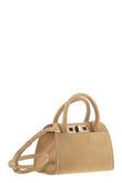 A CONTEMPORARY DESIGN DEFINES THIS SMALL HANDBAG, MADE OF SOFT SUEDE AND EMBELLISHED WITH A METAL ACCESSORY. THE PRODUCTION, ENTIRELY ITALIAN, TAKES PLACE IN ACCORDANCE WITH SUSTAINABLE PROCESSES. - METALLIC ACCESSORY - REMOVABLE SHOULDER STRAP DESIGNER ID: BGD215A853L807 0158 W 21 X H 14 X D 11 CM