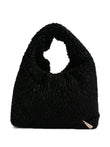 BLACK BOUCLÉ TEXTURE SINGLE TOP HANDLE INTERNAL LABEL GOLD-TONE DETAIL