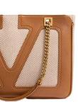 SMALL VIVA SUPERSTAR SHOPPING BAG IN WHITE AND BROWN CANVAS WITH BROWN LEATHER TRIMS. IT FEATURES A MAXI VLOGO SIGNATURE IN BROWN LEATHER ON THE FRONT, A SLIDING CHAIN STRAP WITH LEATHER HANDLES, AN EXTERNAL FLAT POCKET WITH ZIP, A ZIP CLOSURE, AND A SINGLE INTERNAL COMPARTMENT. DUST BAG INCLUDED. ANY IMPERFECTIONS IN THE LEATHER SHOULD NOT BE CONSIDERED FACTORY DEFECTS BUT RATHER A CHARACTERISTIC OF THE MATERIAL.