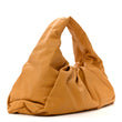 This is an authentic BOTTEGA VENETA Smooth Butter Calfskin Large The Shoulder Pouch in Butterscotch. This shoulder bag is crafted of calfskin leather in light-brown. The bag features an incorporated top strap and a ruched leather magnetic top frame that opens to a matching smooth leather interior.