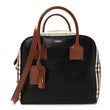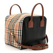 This is an authentic BURBERRY Smooth Calfskin House Check Medium Cube Bowling Bag in Archive Beige. This chic bag is crafted of smooth calfskin in black with signature Burberry house check canvas top and side panels. The bag features brown rolled leather top handles, a brown leather base, and gold-toned hardware. The top zipper opens to a black fabric interior with a leather pocket.