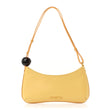 This is an authentic JACQUEMUS Smooth Calfskin Le Bisou Perle in Dusty Yellow. This stylish petite handbag is beautifully crafted of smooth calfskin leather in yellow. It features a leather adjustable strap. This bag also features the signature name and gold hardware. The bag opens to a beige fabric interior.
