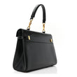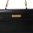 This is an authentic SAINT LAURENT Smooth Calfskin Manhattan Top Handle in Black. This elegant bag is crafted from luxuriously smooth black calfskin leather. The shoulder bag features a leather strap with brass hardware. The top is open to a black leather interior with a zipper pocket and a patch pocket.