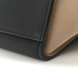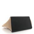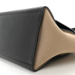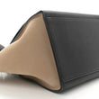 This is an authentic CELINE Smooth Calfskin Medium Tri-Color Trapeze in Blue. This stylish tote is crafted of fine black calfskin leather with beige nubuck suede wings. The bag features a blue patent cross-over frontal flap and rolled leather top handle, an optional black shoulder strap, and silver hardware. The flap opens to a spacious black leather interior with flat pockets.