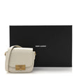 This is an authentic SAINT LAURENT Smooth Calfskin Mini Betty Satchel in Ivory. This stylish messenger bag is crafted of luxurious smooth calfskin leather in ivory. It features an adjustable leather crossbody strap with gold links and a flap with a gold YSL logo press-lock This opens to reveal a beige suede interior with card slots.