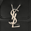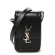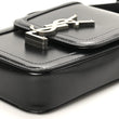 This is an authentic SAINT LAURENT Smooth Calfskin Mini Solferino Satchel in Black. This chic shoulder bag is crafted of smooth leather. The bag features an adjustable shoulder strap with aged silver hardware. The crossover flap opens with a matching silver YSL monogram press lock to a black leather interior with card slots
