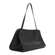 This is an authentic THE ROW Smooth Calfskin Peggy Bag in Black. This stylish tote bag is made of black smooth leather with a top handle strap and silver hardware. The top zipper opens to a soft, black leather interior with zipper and patch pockets.