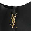 This is an authentic SAINT LAURENT Smooth Calfskin Small Le 5 A 7 Soft Hobo in Black. The hobo bag is classically structured and crafted of luxurious black leather. It features a looping adjustable shoulder strap and a crossover strap with a gold YSL logo to latch the bag closed. The top of the bag is open to a black suede interior with a zipper pocket that creates a patch pocket.