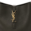 This is an authentic SAINT LAURENT Supple Calfskin Small Le 5 A 7 Soft Hobo in Light Musk. This bag is crafted of khaki green calfskin leather with an adjustable looping shoulder strap. The crossover aged gold YSL emblem opens the bag to a matching suede leather interior with a zipper compartment.