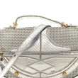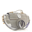 This is an authentic Fendi Snakeskin Nylon Vanity Mirror Clutch Bag in Transparent. This chic clutch is crafted of silver snakeskin and Nylon fabric in silver. The bag features a leather top handle, a removable strap, a front mirror and gold hardware. The flap opens to a purple satin fabric interior with patch pocket.
